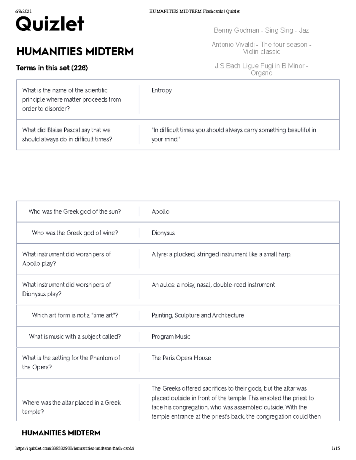 Midterm Week 1 Week 8 Humanities Midterm Terms In This Set 228 What Is The Name Of The Studocu